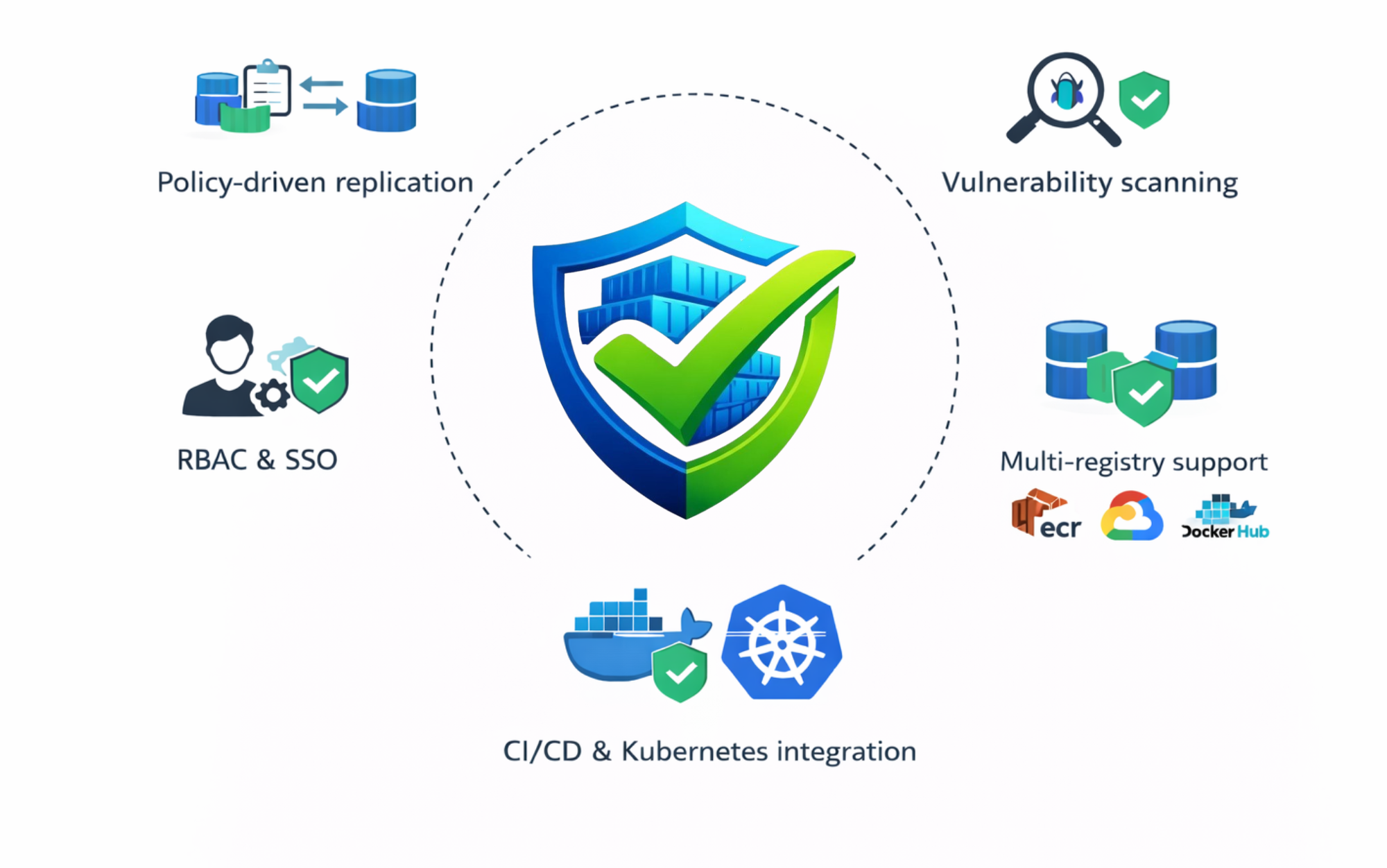 Automatically replicates images across Trustary and external registries using push or pull rules. -